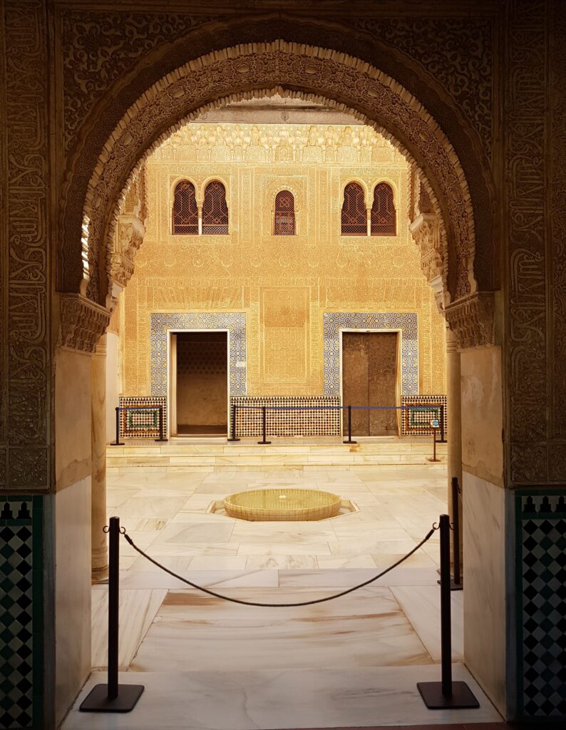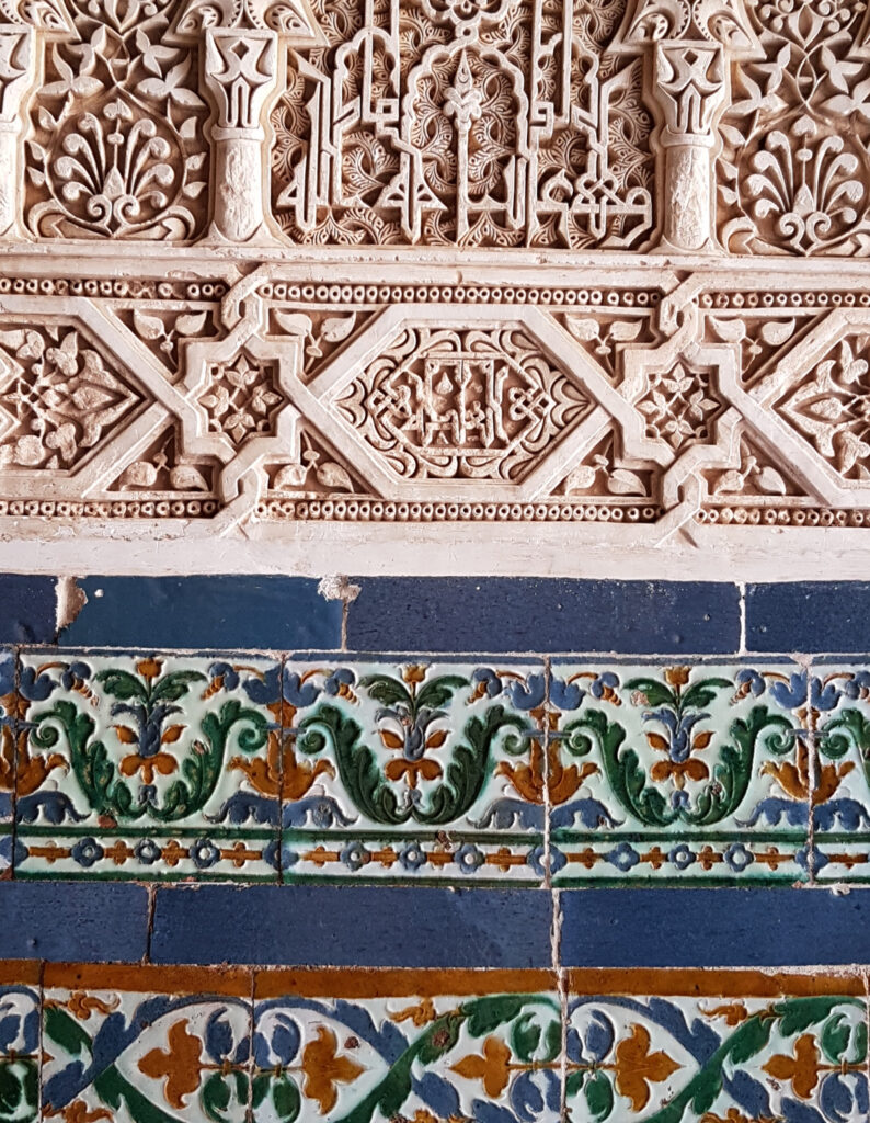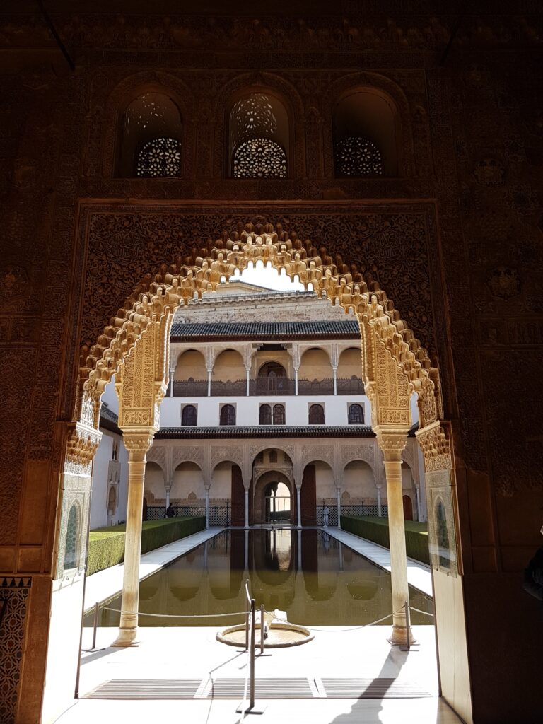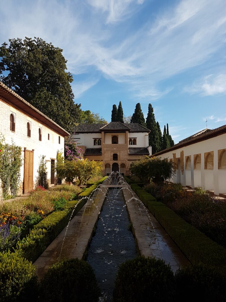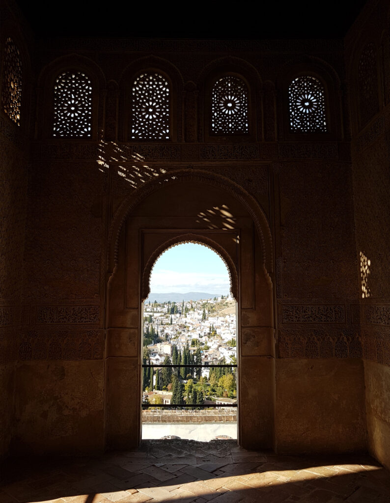 Botladozva járkáltunk fel s alá a városban, mert mindig akadt egy csodálatos kilátás, pálmafás parkok, díszes épületek vagy megcsodálni való naplemente, annyi, hogy nem maradt időnk a lábunk elé nézni. Utólag meg is állapítottuk az erasmusos kollégáimmal, hogy ez a város bizony egy nagy kilátóra épült. Nem véletlenül tartják a mór kultúra ékkövének, hisz sok minden maradt hátra azokból a virágzó időkből. Kihagyhatatlan látogatási célpont az Alhambra templom, amely esetünkben egy egész napos programnak bizonyult. A járvány miatt szinte egyáltalán nem voltak turisták, s úgy tűnt, egy kis ideig teljes betekintést nyertünk a történelembe. Számunkra különösen hízelgő volt ez a szerencsés alkalom, hiszen a műhelyben, ahol szerződtetve voltunk, eredeti Alhambra díszítéseket és motívumokat kreáltunk újra, és festettünk meg teljesen a nulláról.